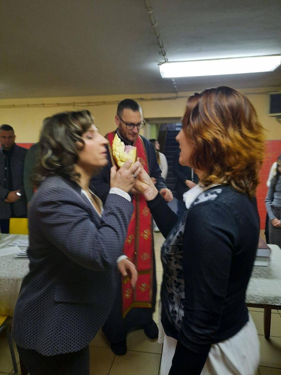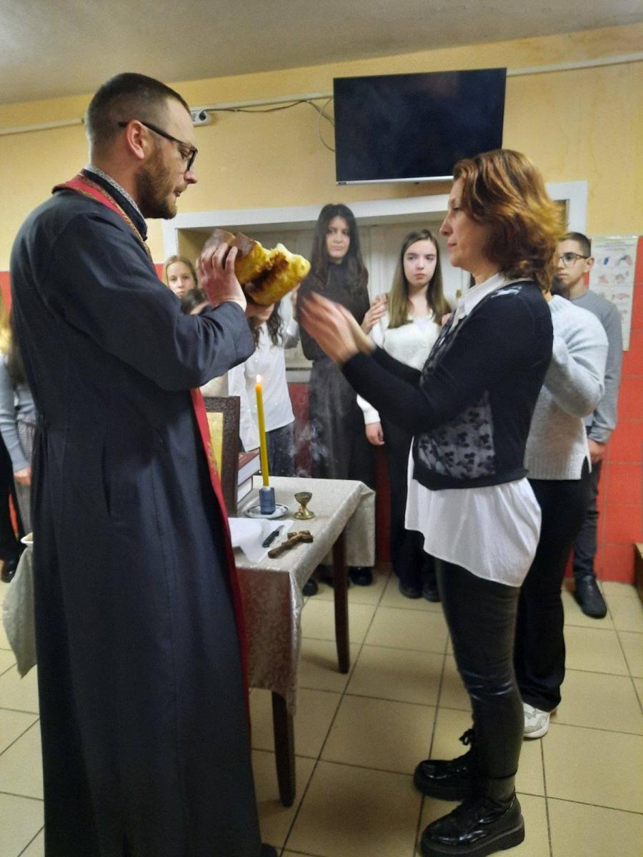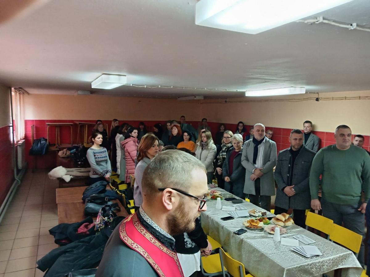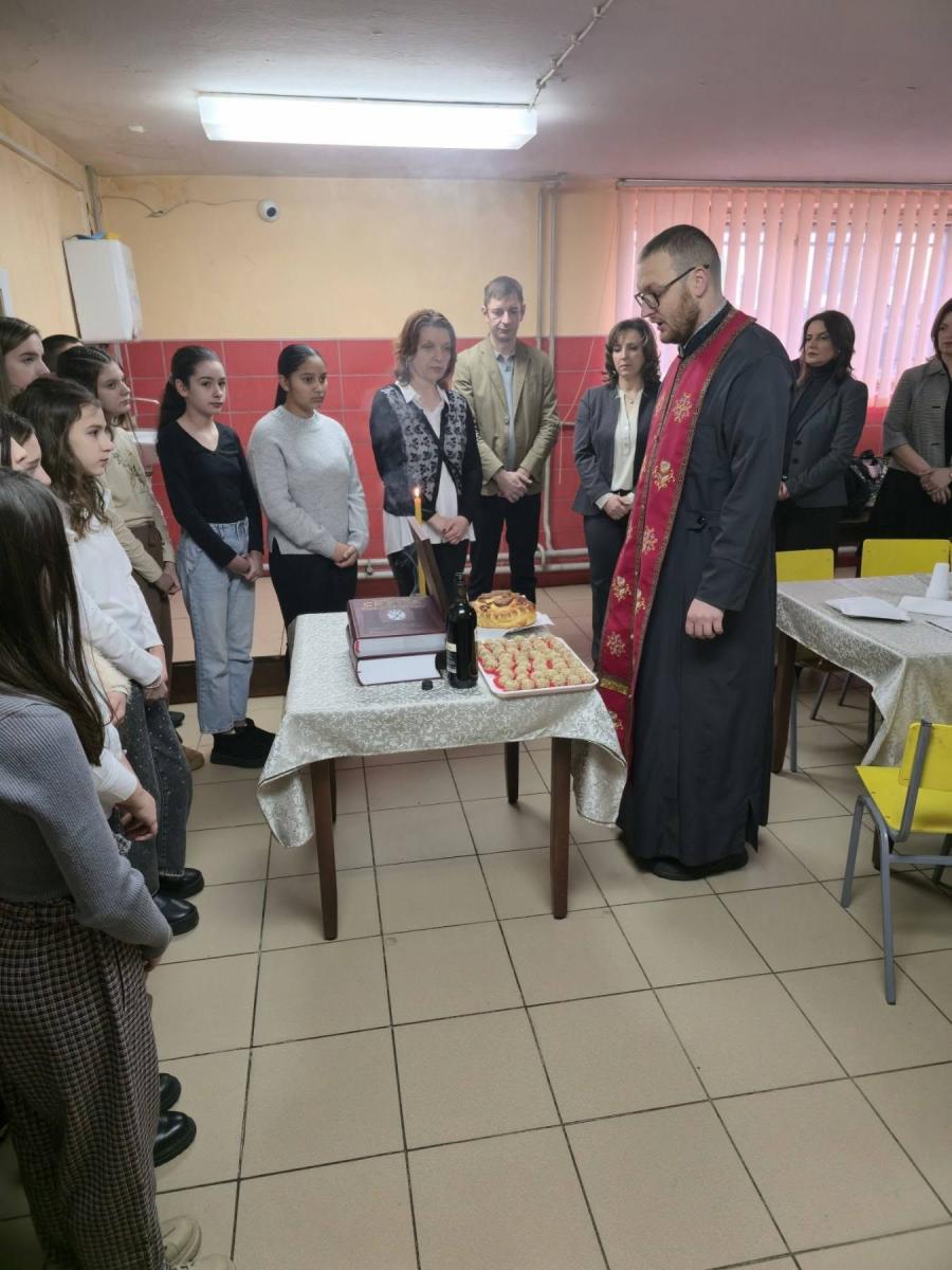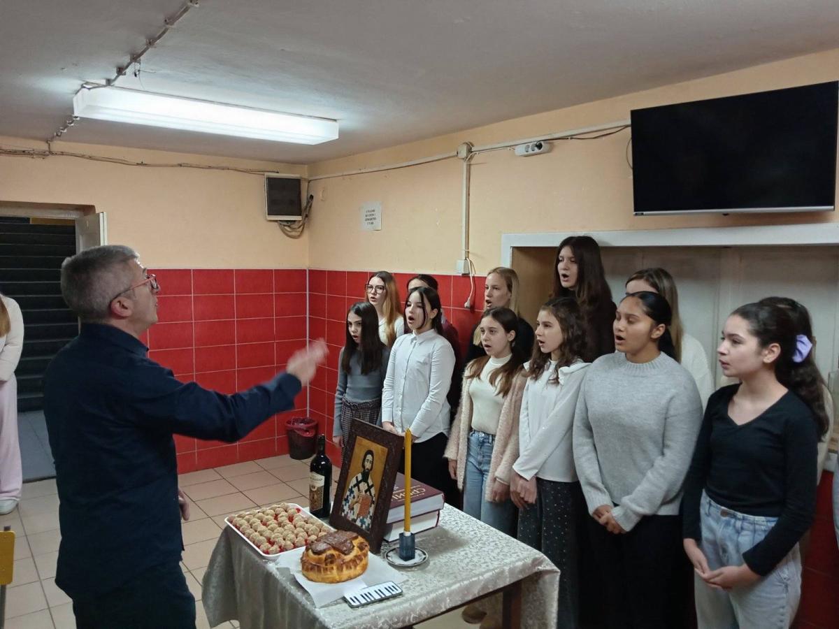 У молитвеном и свечаном духу, уз присуство свештеника, запослених и ученика, као и уз дирљив наступ школског хора, обављено је сечење славског колача.